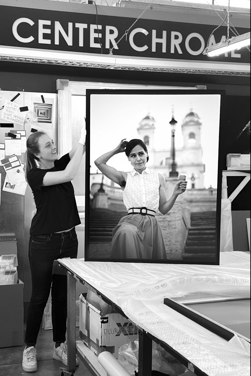 Un altro aspetto fondamentale per il successo di una mostra è quello delle finiture artigianali, che spesso vengono trascurate. In questo caso, dopo un'attenta valutazione, abbiamo scelto una classica cornice a cassetta nera, dotata di passepartout museale e plexiglas protettivi ultra clear. La produzione delle cornici e il montaggio delle stampe fine art al loro interno sono stati eseguiti nel nostro laboratorio da uno staff di operatori esperti che si occupano di queste delicate mansioni.